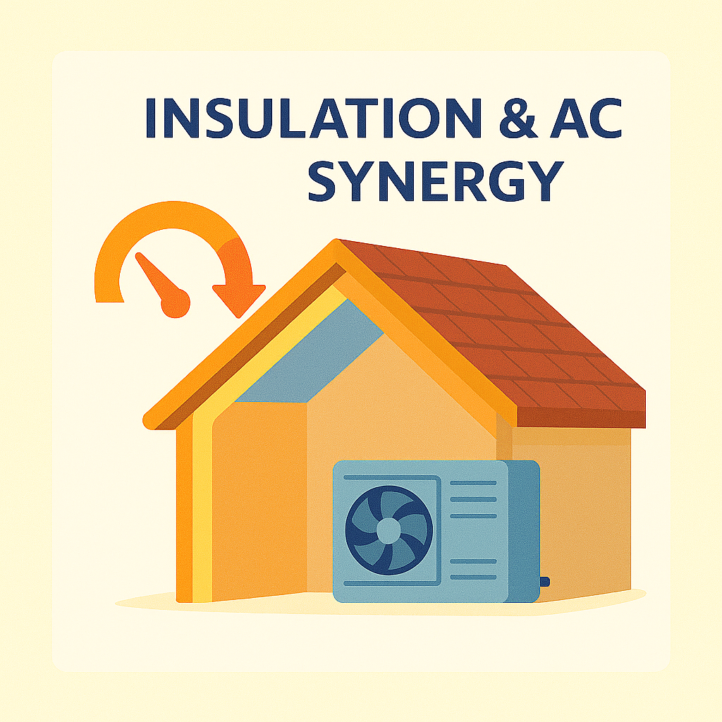Insulation and air con together boost energy efficiency. Less heat gets in, so cooling systems use less electricity to keep things comfortable.